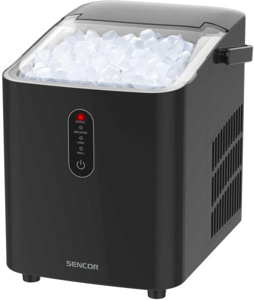 Jégkészítő SENCOR SIM 2500BK jellemzőek a 268 × 217 × 282 mm-es praktikus méretei, amelyek alkalmassá teszik a kisebb helyiségekbe való elhelyezésre. Tömege mindössze 6,1 kg az ergonomikus fogantyú pedig könnyen hordozható. A fekete műanyag test modernnek tűnik, és bármilyen belső térbe illik, legyen az városi konyha, lakókocsi vagy hajó.